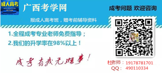 欢迎报考成人高考,更多函授咨询,请关注微信公众号:广西成考网 ,杜老师电话、微信:19178781701 具体了解!电子注册,学信可查,2.5年毕业,国家承认有效学历。