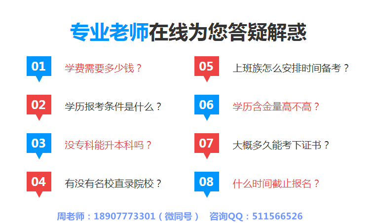 2、预报名后,负责老师会为考生讲解所报考院校的录取分数线、录取后的学习形式(网上学习还是到校学习),毕业要求等信息,方便考生选择适合自己的院校和专业;