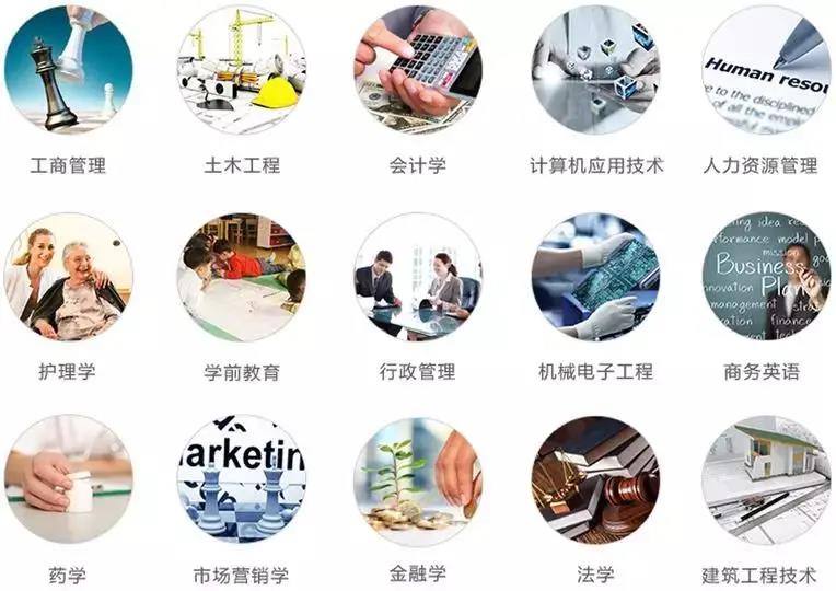 高升专学历招生专业:金 融、工商管理、行政管理、法律事务、护理、药学、会计、会计电算化、财务管理、信息安全与网络管理、计算机信息管理、机电一体化、建筑工程技术、机械制造及其自动化、交通运输管理、物流管理、市场营销等。