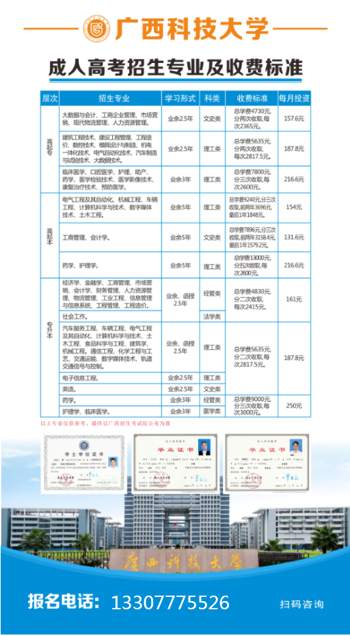 广西科技大学成考,本科学历要多少钱?