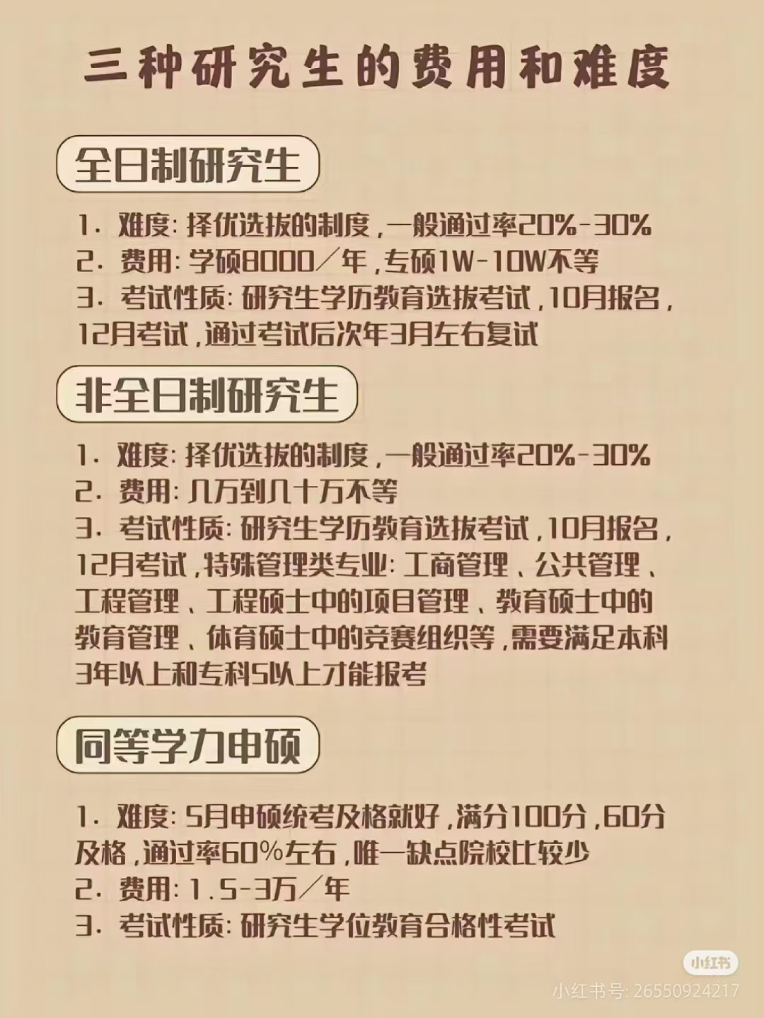 通过在职专业硕士方式进行院校学习,学员要与全日制研究生一起进行考试。在初试环节,学员一般有思想政治理论、外国语和专业课等内容,管理类专业只有英语二、管理类联考综合能力两部分内容。