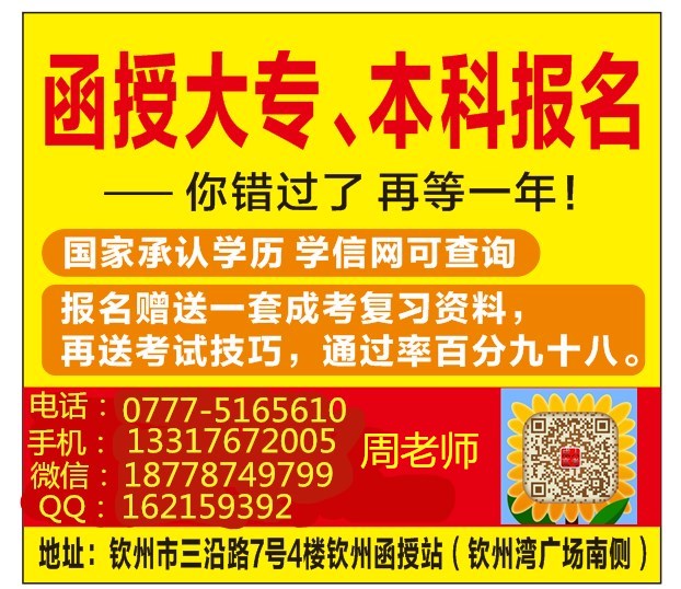 广西成人高考信息可咨询在线招生老师电话: