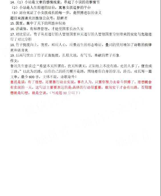 2019年10月成人高考高起点《语文》真题及答案(网友版)