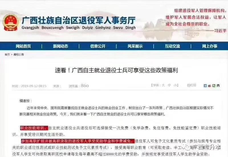 钦州退伍兵升大专本科福利,2020年报名需趁早!