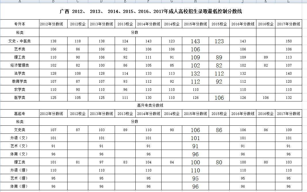 文史、中医类,理工、经管类,农学类,医学类,法学类,教育类: 120分