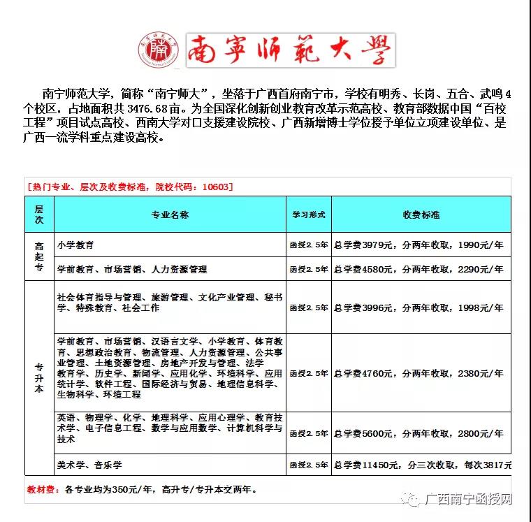 5、特别提醒:成人高考只有考试通过后,被报考院校录取,才会收取学费,学费标准应以广西成人高考招生考试网及学校官方公布的学费为准,谨防乱收费,请考生熟知。
