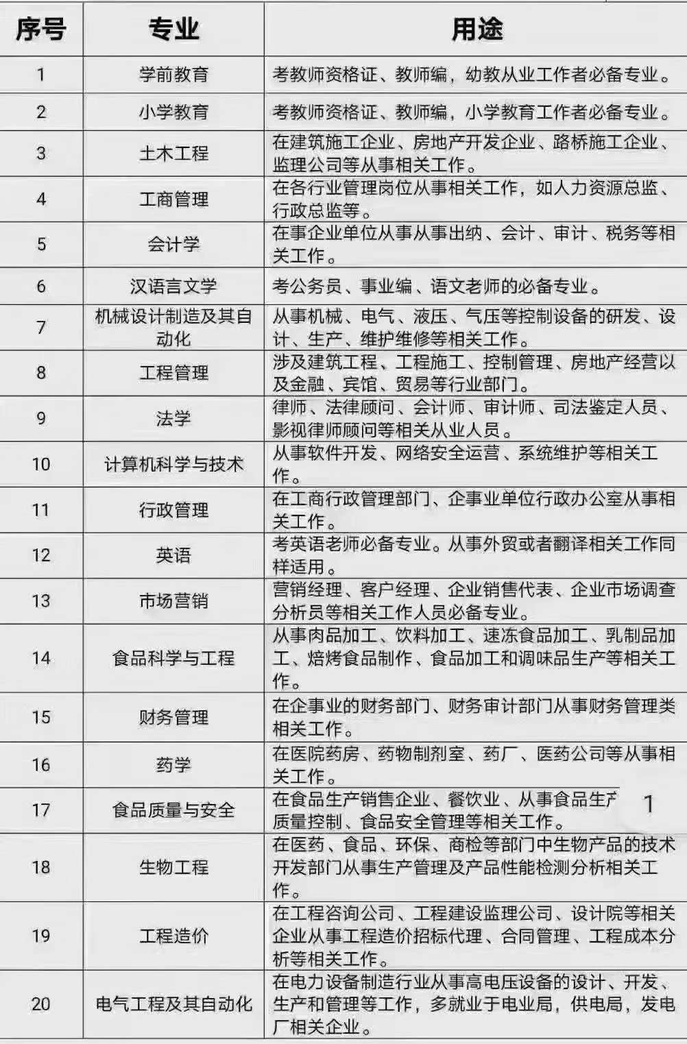 2021年成人高考热门函授大专/本科专业毕业用途介绍