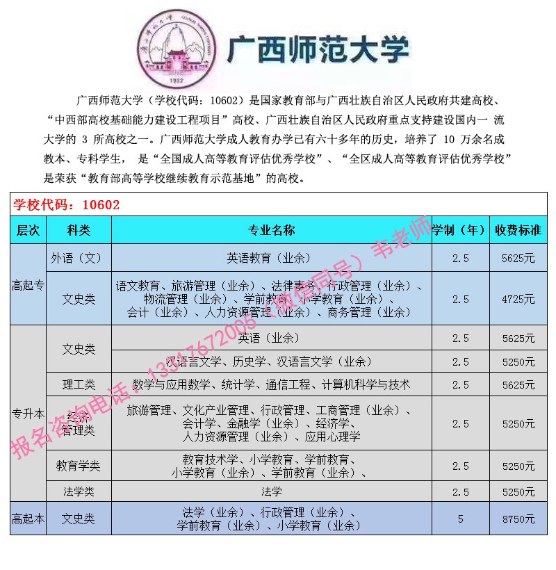 广西成人高考信息可咨询在线招生老师电话: