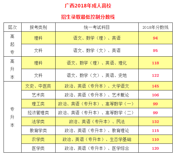 广西成人高考考点分布: