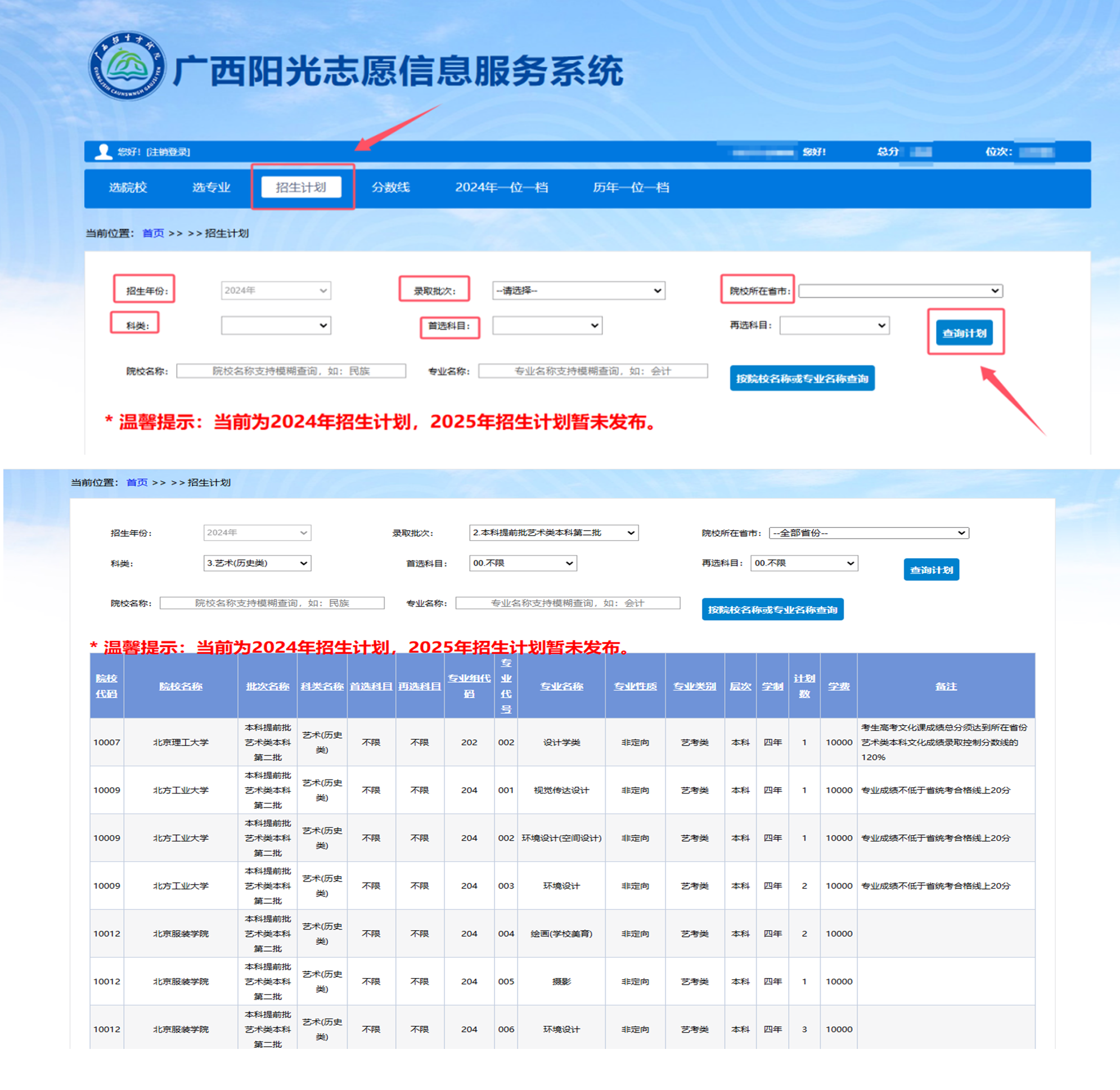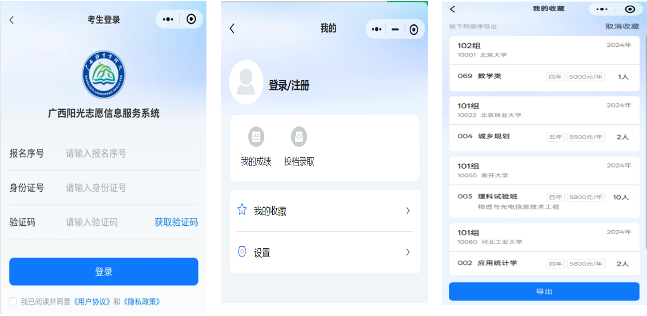 2025年“广西阳光志愿信息服务系统”(含pc端、微信小程序)对系统界面进行了全面优化,信息展示更加清晰直观,功能分区更加科学合理,操作流程更加流畅便捷,旨在为考生提供更优质、更便捷的使用体验。