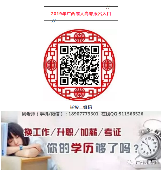 广西成人高考信息可咨询在线招生老师电话: