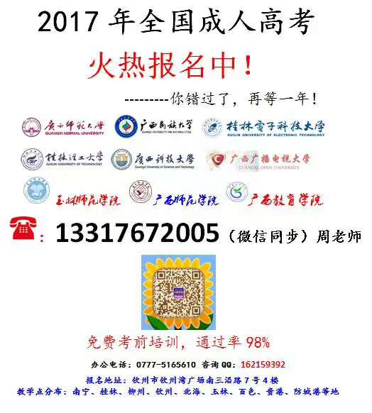 广西成人高考信息可咨询在线招生老师电话: